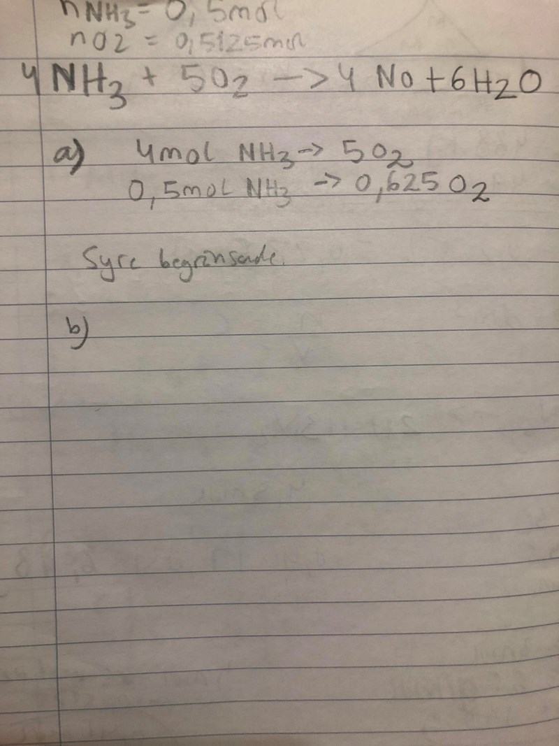 Syre är begränsande reaktant. Men hur ska man tänka uppgift B?