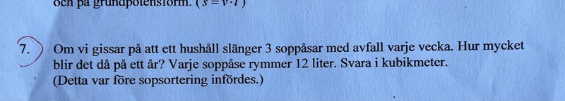 Det stämmer att det blir 156 soppåsar per år och att det blir totalt 156•12 = 1872 liter.
