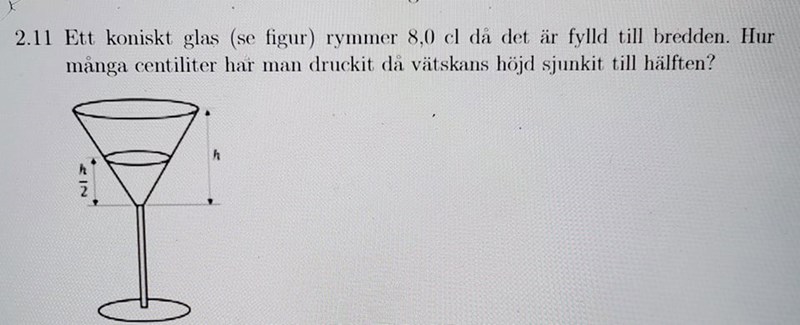 använd volymskalor. Längd skalan mellan den stora och lilla konen är (h / (h/2). Vad är då volymskalan