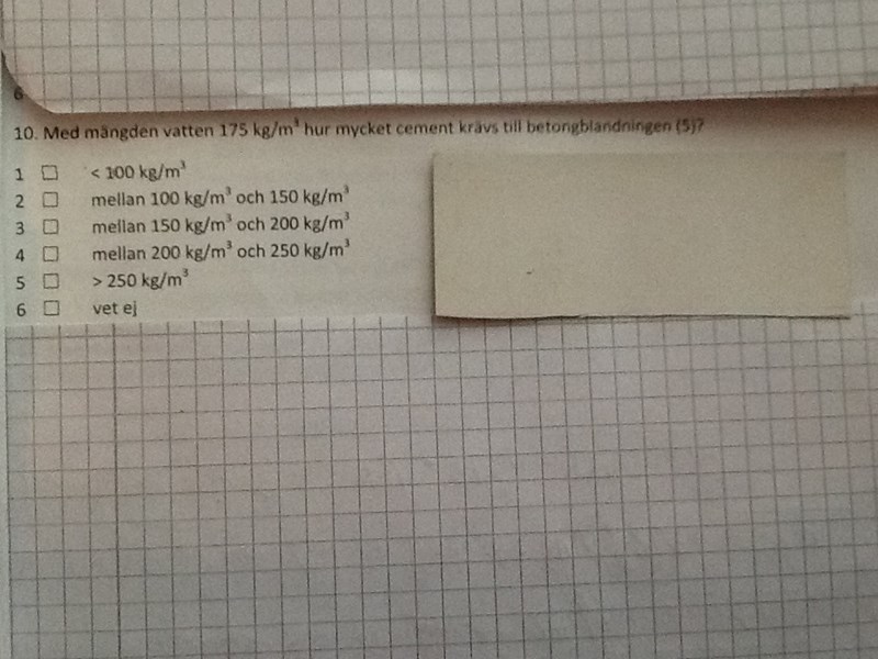Men i uppgift 10)Med mängd vatten 175kg/m^3 hur mycket cement krävs till betongblandningen?