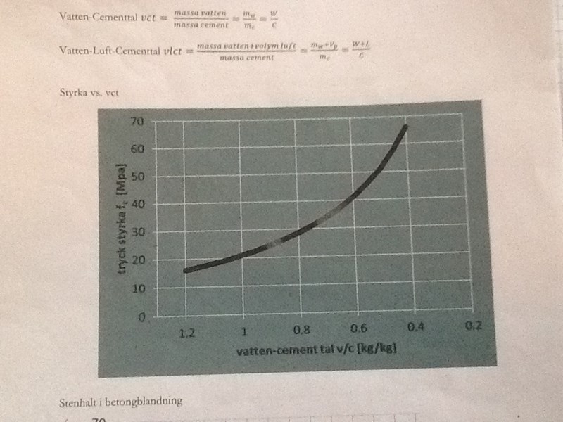 vi tittade på styrka vs.Vct vi fick. Mängd cement= mängd vatten/Vct=165/0,9= svar 183