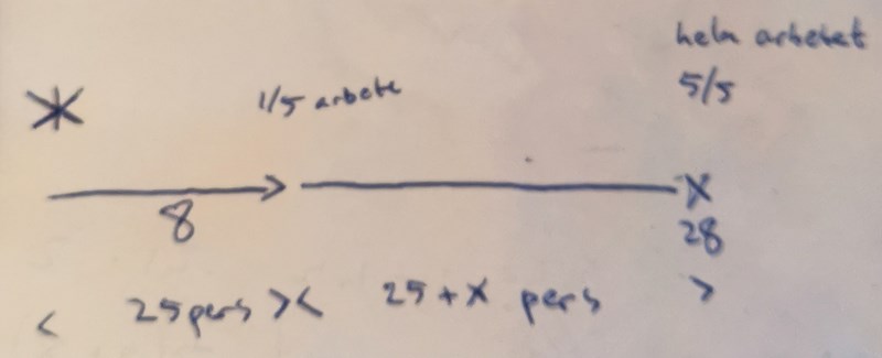 Sedan, hur mycket bygger då 25+x personer på 20 dagar?