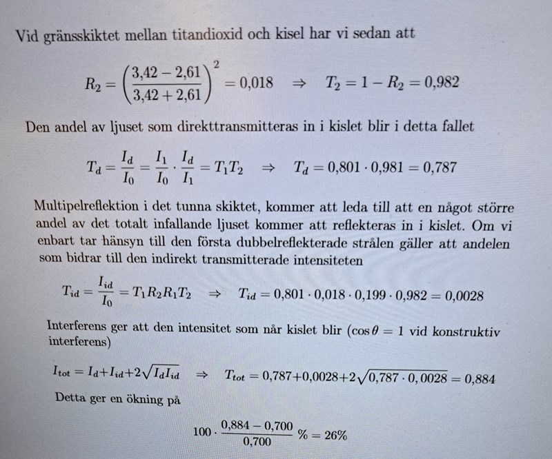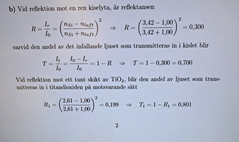 Jag förstår inte riktigt de här första R och T de räknar ut. När de räknar ut T och R för ren kiselyta så förstår jag inte varför man även räknar ut för TiO2 också? Ren kiselyta har ju inte TiO2 på ?