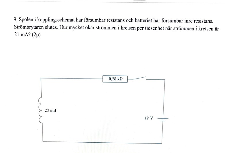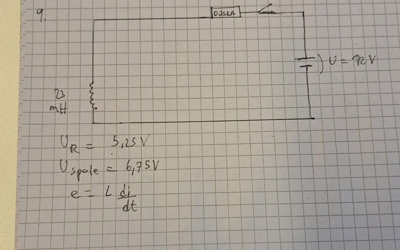 Jag tänker när strömbrytaren sluts så går det ingen strömmen i början hos spolen utan bara i resistorn och då kan man ta reda på vad den resistorn har för spänning mha ohms lag givet att vi fått strömmen i uppgiften. Efter en lång tid så kommer det passera ström hos spolen och då kan vi mha kirchoffs spänningslag hitta vad spolen har för spänning vilket jag fått ut vad det blir. Men problemet är nu hur jag ska bestämma polariteten hos spolen ? Jag tänker lenz lag vill motverka förändring i detta fall att strömmen ökar och då kommer spolen svara med en ström som går medurs istället eftersom spolens spänning minskar eller ?