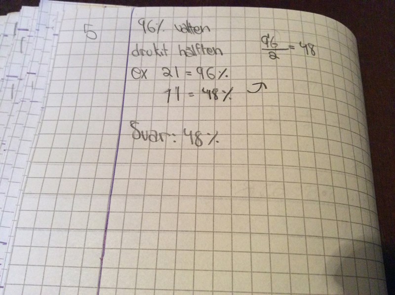 Min uträkning: Det är fel, det rätta svaret är 96%, men jag vet inte hur man ska räkna ut det