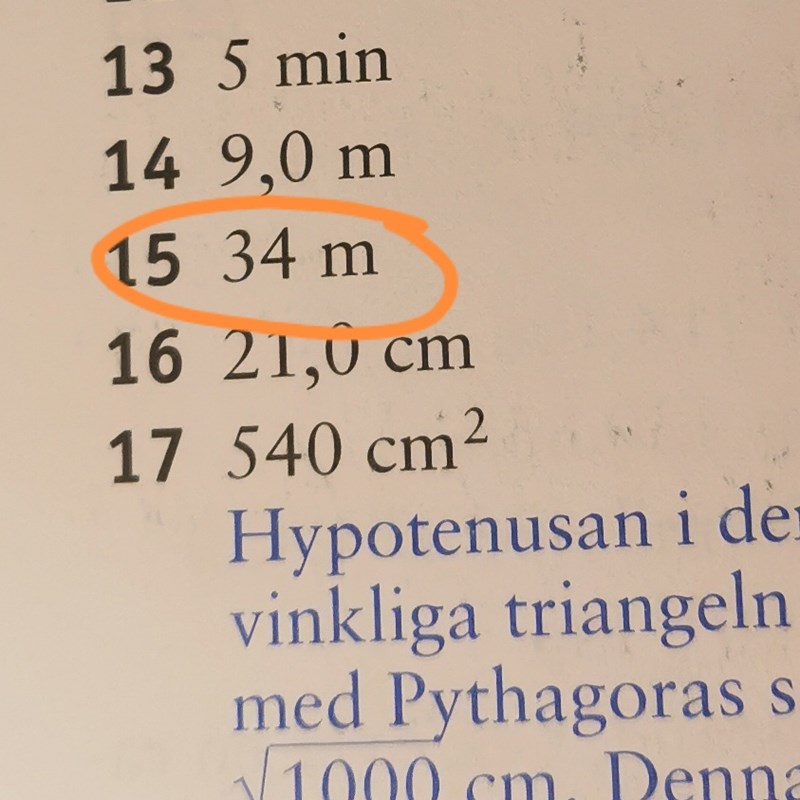 Men facit svarar i sträcka. 34m snabbare om hon springer och simmar, jämfört med om hon bara simmar.