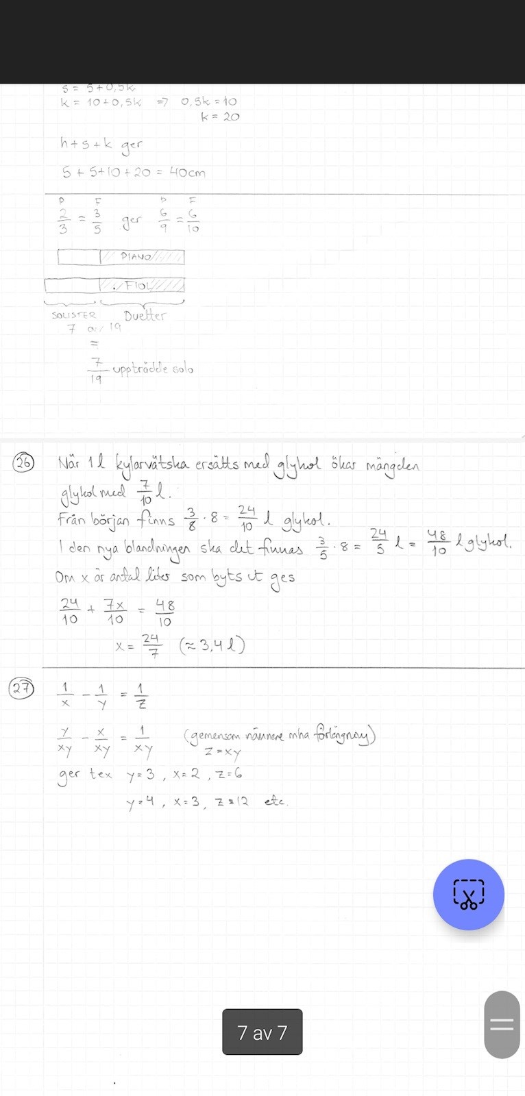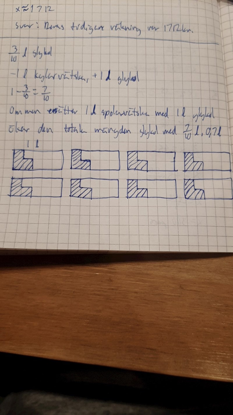 x = 24/7 liter kylarvätska ska tappas ut