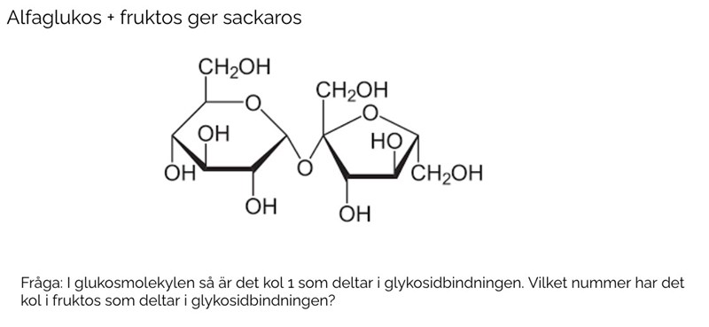 Glykosidbindningar uppstå vid aldehyd-/ketogruppen som sitter på position 1 vid glukos och på position 2 vid fruktos. Det kanske blir mer uppenbart om man betrakta kedjeformerna: