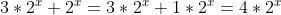 Du har 3*2x + 2x det är samma som 3*2x +1*2x = Bryt ut 2x . 2x (3+1) = 4 *2x så 3:an försvinner inte den blir tillsammans med 1 = 4