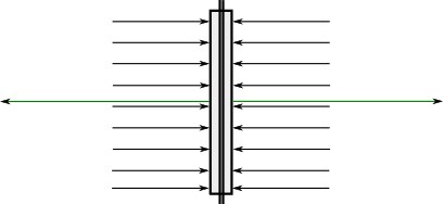 De gröna pilarna är krafterna från hästarna eller loket som försöker dra isär halvorna.