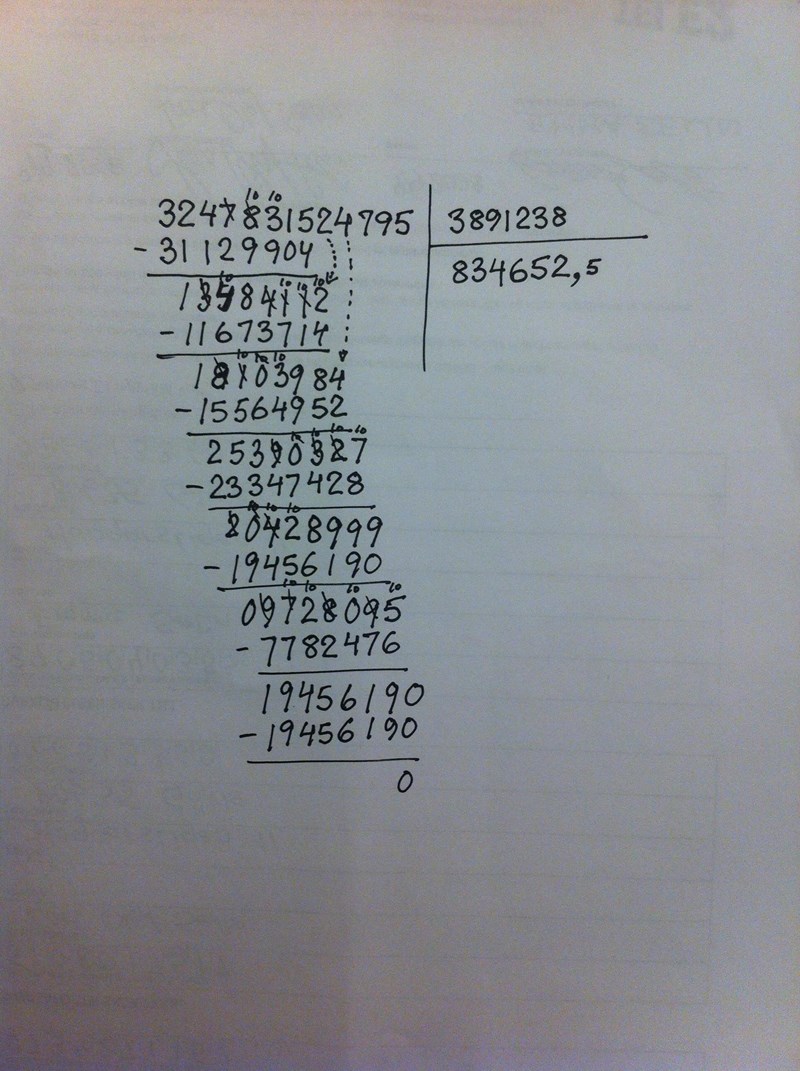 Så här räknade vi ut 3247831524795 / 3891238 = 834652,5 förr i tiden.