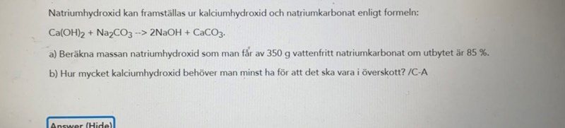 Korrekt. Hur många mol är 350 g vattenfritt natriumkarbonat? Hur många mol NaOH skulle det bildas, om utbytet var 100 %?