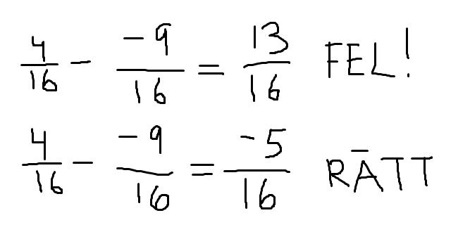 Hur räknar jag ut talet? (Subtrahera två bråk med negativt tal i en täljare)