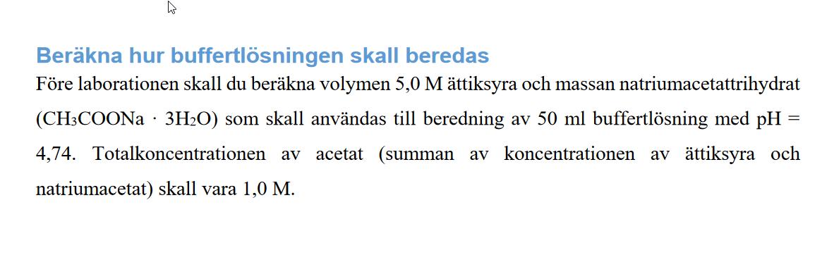 jag ska beräkna volymen som behövs. och behöver veta hur jag ska gå tillväga för att bereda en buffertlösning. vad betyder total koncentration och varför är det viktigt?. en bild på informationen som jag fått visas nedanför.