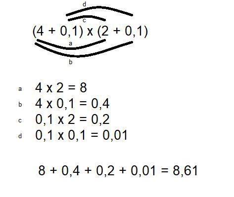 Jag hade tänkt att 4.1 * 2.1 innebär att det ska gångras med 2, men att det ska dit en 4.1 * 0.1 ovanpå också.