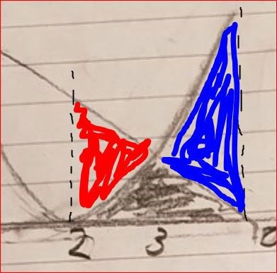 Jaha, men denna handlar om den skuggade arean som begränsas av x-axeln och de två funktionerna. Jag har missat att skriva det på pappret,men jag tror att det står i inlägget