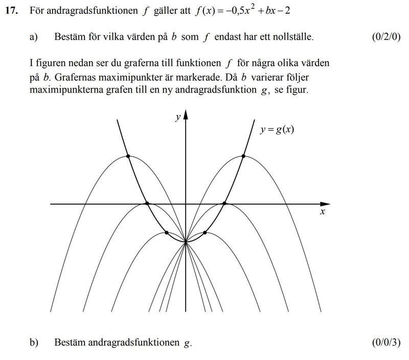 Exempelvis: f(x)=ax²-8. Bestäm a. (Här visas det också ett graf på den riktiga frågan).