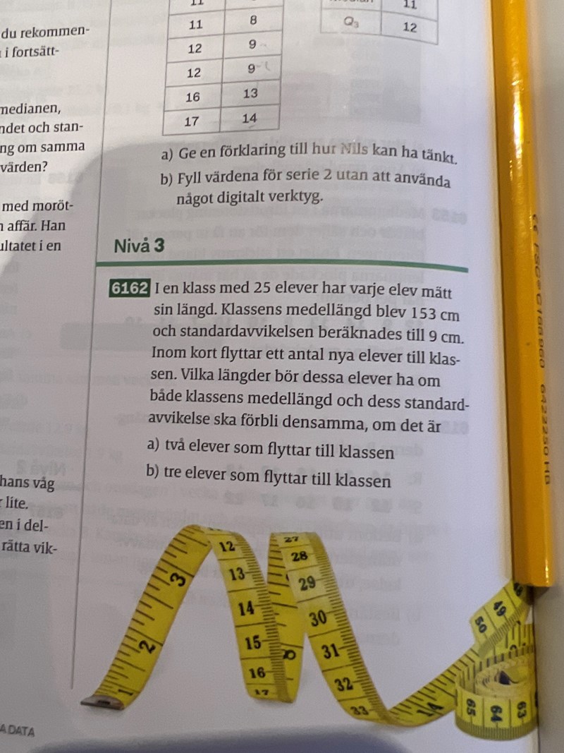 För att få fram värden på det måste du räkna ut kvadratsumman ur uppgiften att standardavvikelen är 9.