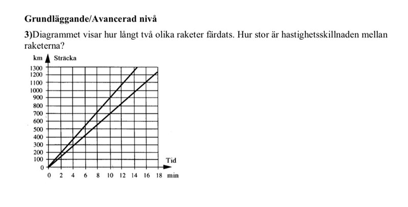 Hur lång sträcka färdas den ena raketen på 10 minuter? Vilken hastighet motsvarar att åka den sträckan på 10 minuter?