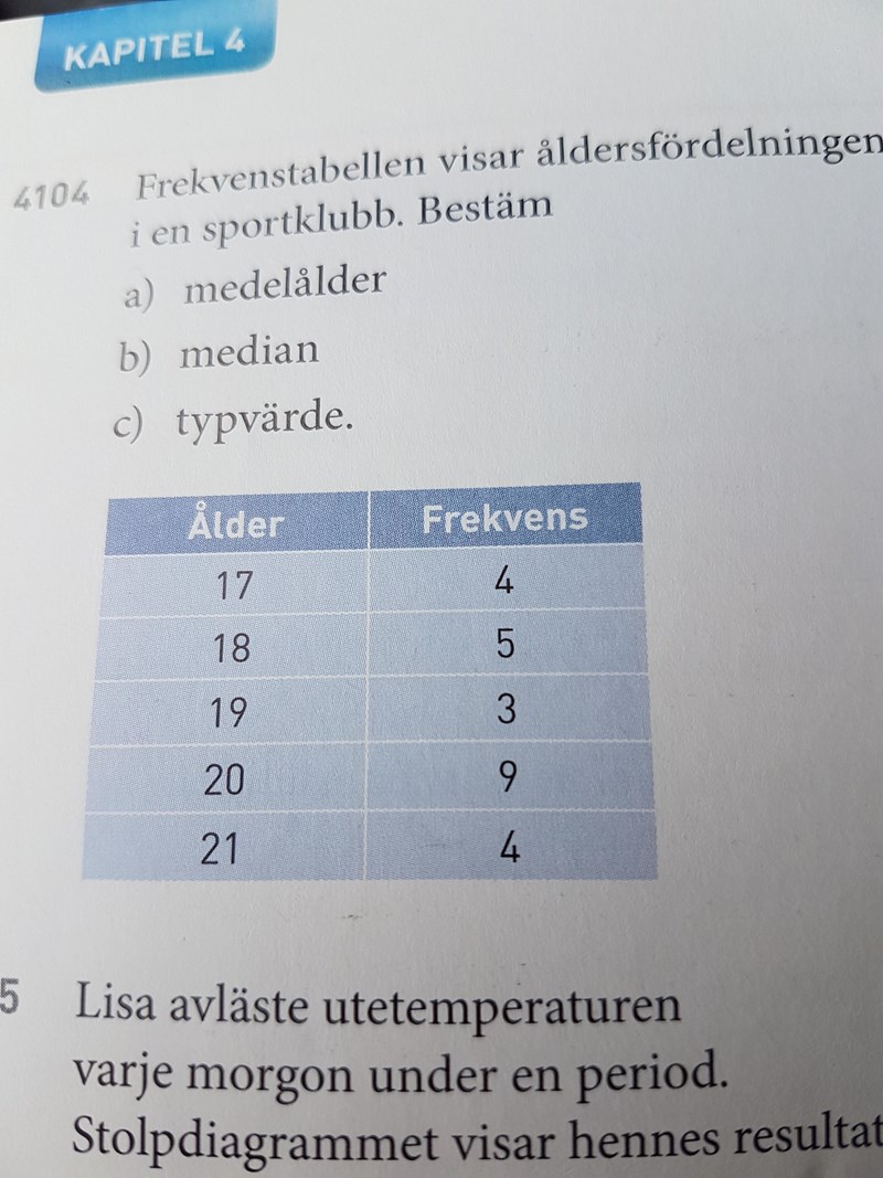 Fundera på om du kan hitta åldersgränsen där det blir lika många som är yngre eller lika med åldern som äldre eller lika med åldern utan att behöva göra en lista över alla personer.