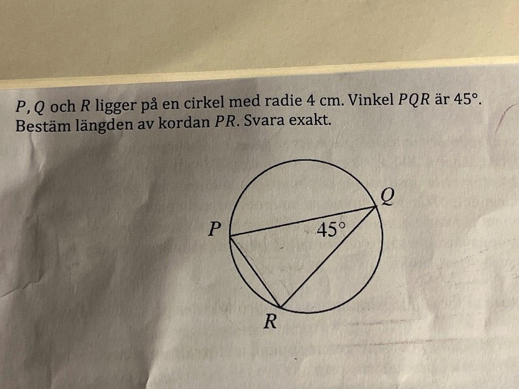Du vet att radierna är 4cm. Kan du nu beräkna PR med en välkänd sats?