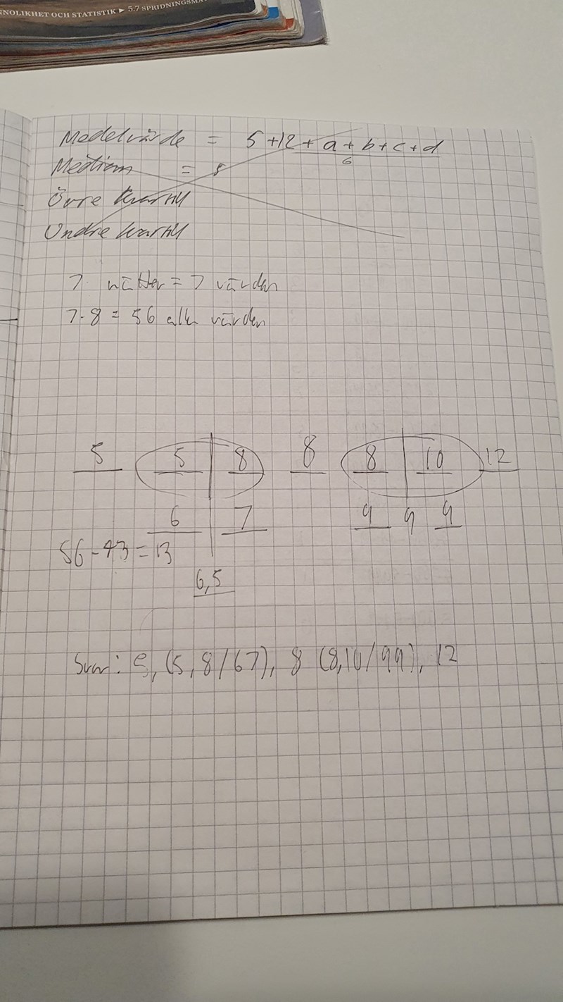 Hur räknar man ut nedre kvartil utifrån ett antal andra spridningsmått?