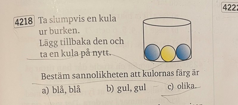 Men du ska ta 2 kulor. Så det ska finnas 4 möjliga olika utfall.
