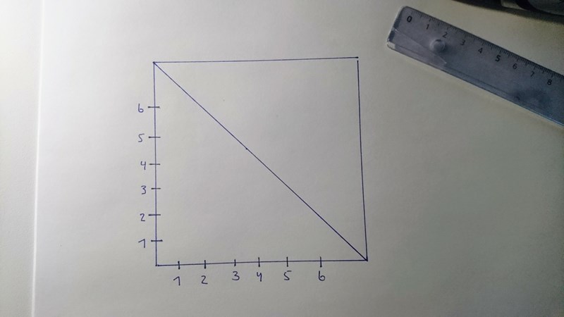 Den här diagonalen du ska rita är ju en linje från (3,6) till (5,2).
