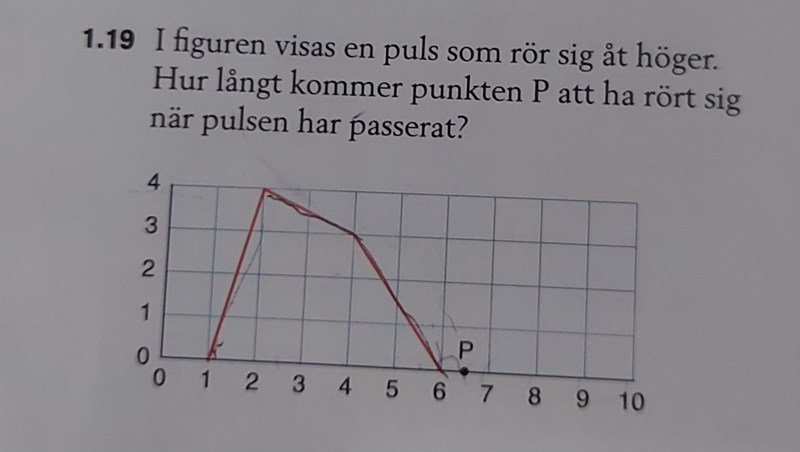 Jag förstår inte riktigt hur jag ska tänka på denna fråga. Är det så att punkten typ flyttas längs den röda linjen när den röda linjen passerar och borde den inte i så fall vara på samma plats när pulsen har passerat?