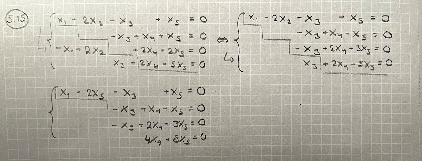 Jag håller på att lösa uppgiften nedan och försöker då gausseliminera och få fram ett trappformatsystem där jag kan se pivåvariablerna. Men, jag har lite svårt att komma på hur jag ska tolka detta "trappformade" system: var blir "hörnen" i trappan (som är väsentligt att ta fram för att kunna avgöra vilka obekanta som är pivåvariabler)? Tack på förhand!