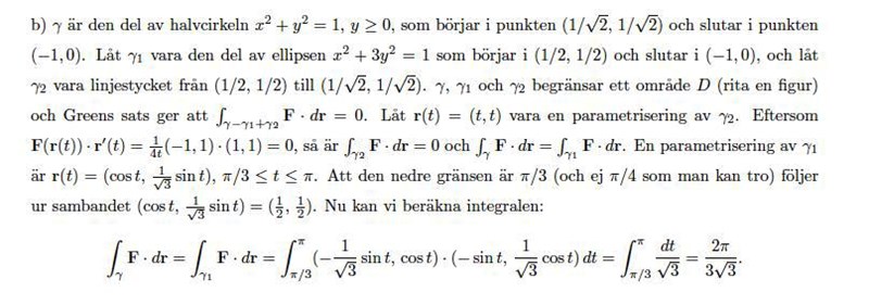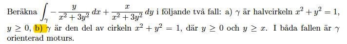Det enda som kvarstår är alltså att beräkna -integralen. Detta görs genom att parametrisera ellipsen (som vi kommer ihåg definierar segmentet ) så att man får: