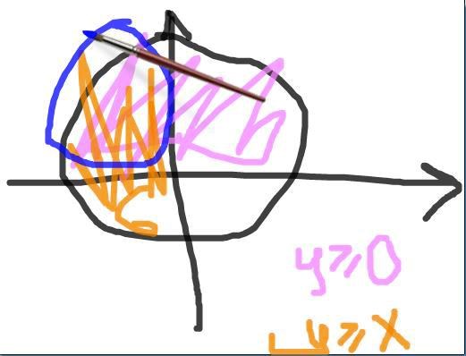 och när y => 0 så betyder det (i cirkeln) att vi är befinner oss i första och andra kvadraten,