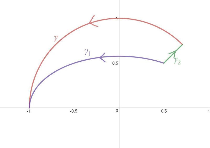 Men integrationsvägen är en kurva som går längs med enhetscirkeln från punkten till punkten .