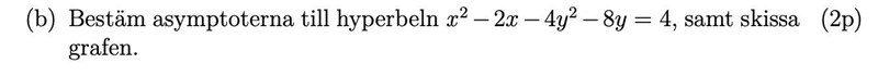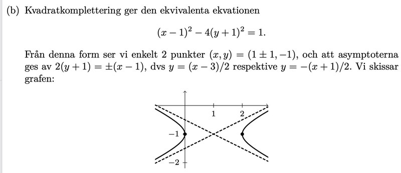 Det står ''Sedan ser man enkelt att asymptoterna ges av 2(y+1)=+-(x-1). Hur ser man det enkelt?
