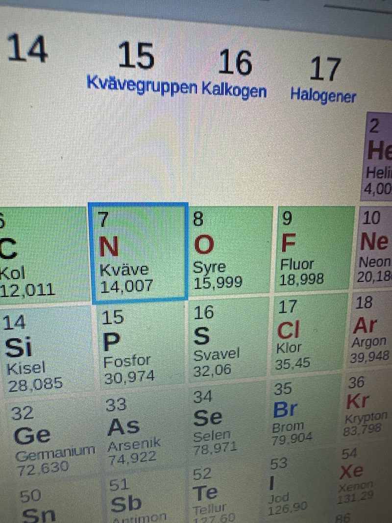 i uppgiften så står det att masstalet på en av grundämnena i periodiska systemet är 15 fast när jag kollar på det periodiska systemet så ser jag ingen som är 15 exakt
