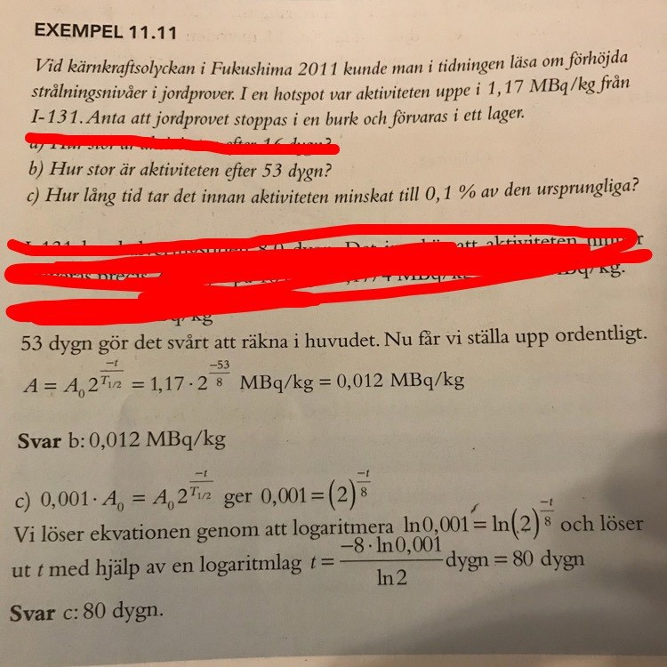 Hur ska jag beräkna aktiviteten med denna formel och inte som de gjort?