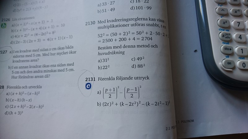 Om vi sedan gör likadant med det andra uttrycket blir regeln a-b2=a2-2ab+b2 Om man använder den får man: