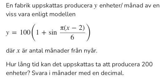 - Om det inte är meningsfullt att använda decimaltal för att beskriva månad, utan bara kan anta heltalsvärden (månad x=1, månad x=2 och så vidare), så kan man använda summa för att besvara frågan.