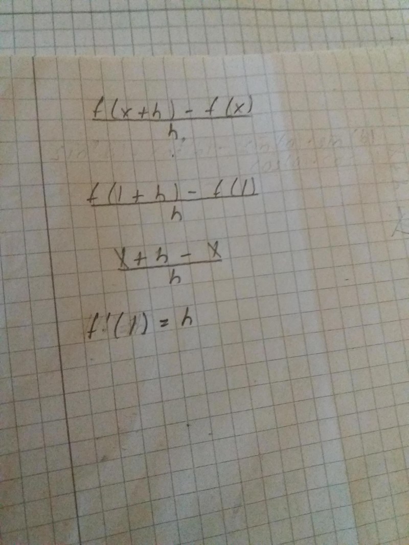 Du har skrivut att f(1+h) = 1+h och att f(1) = 1, men det stämmer inte.