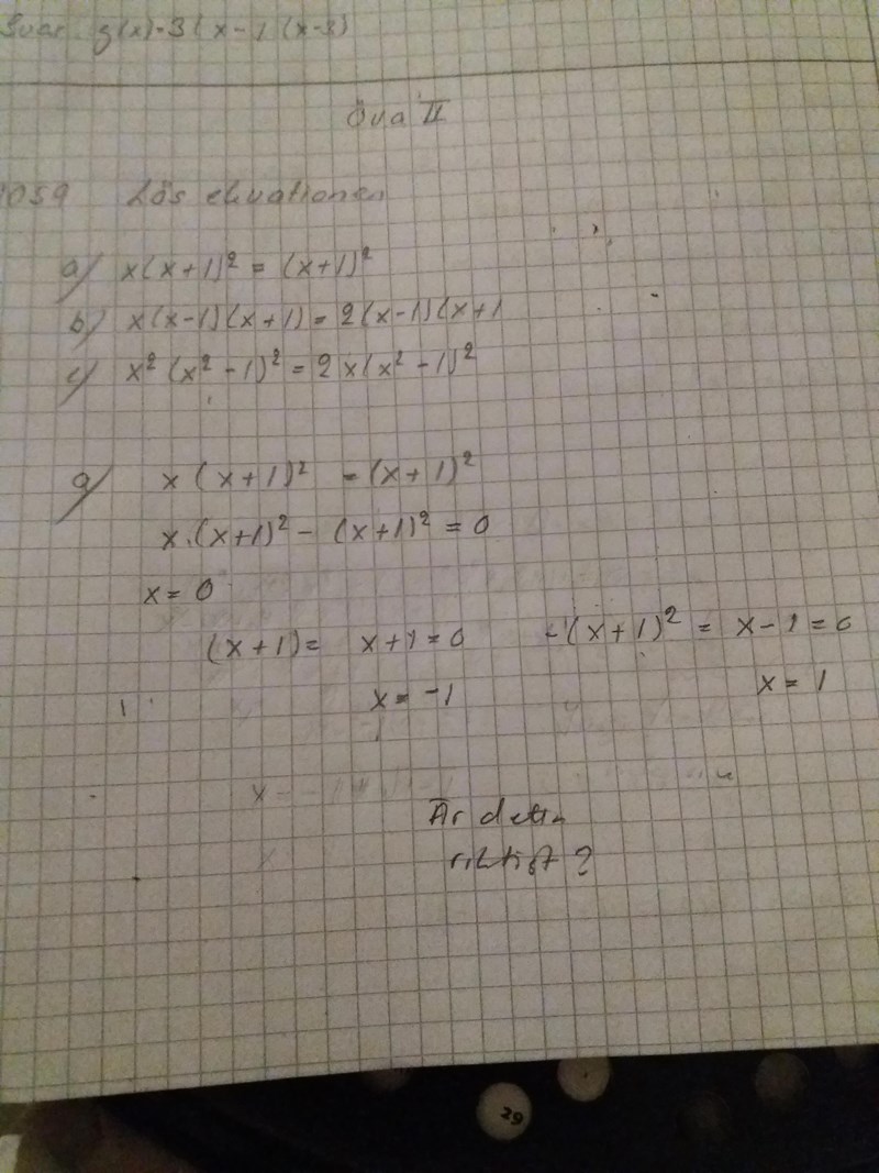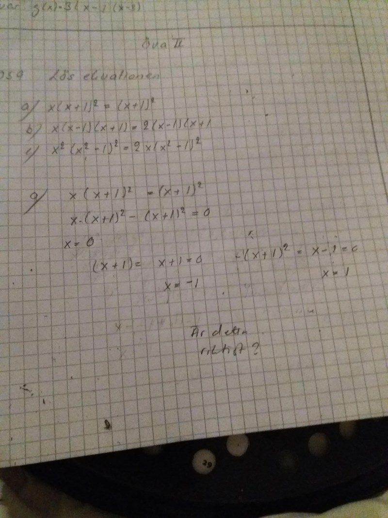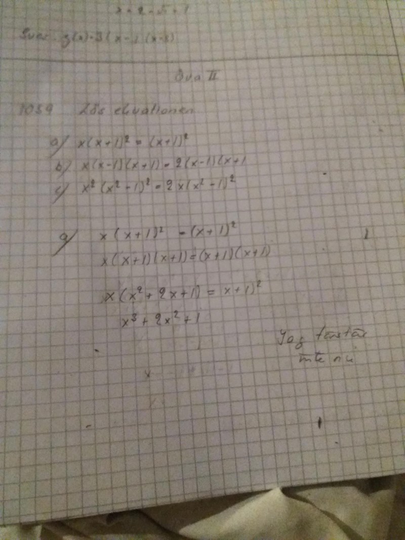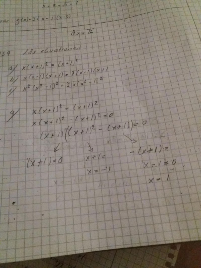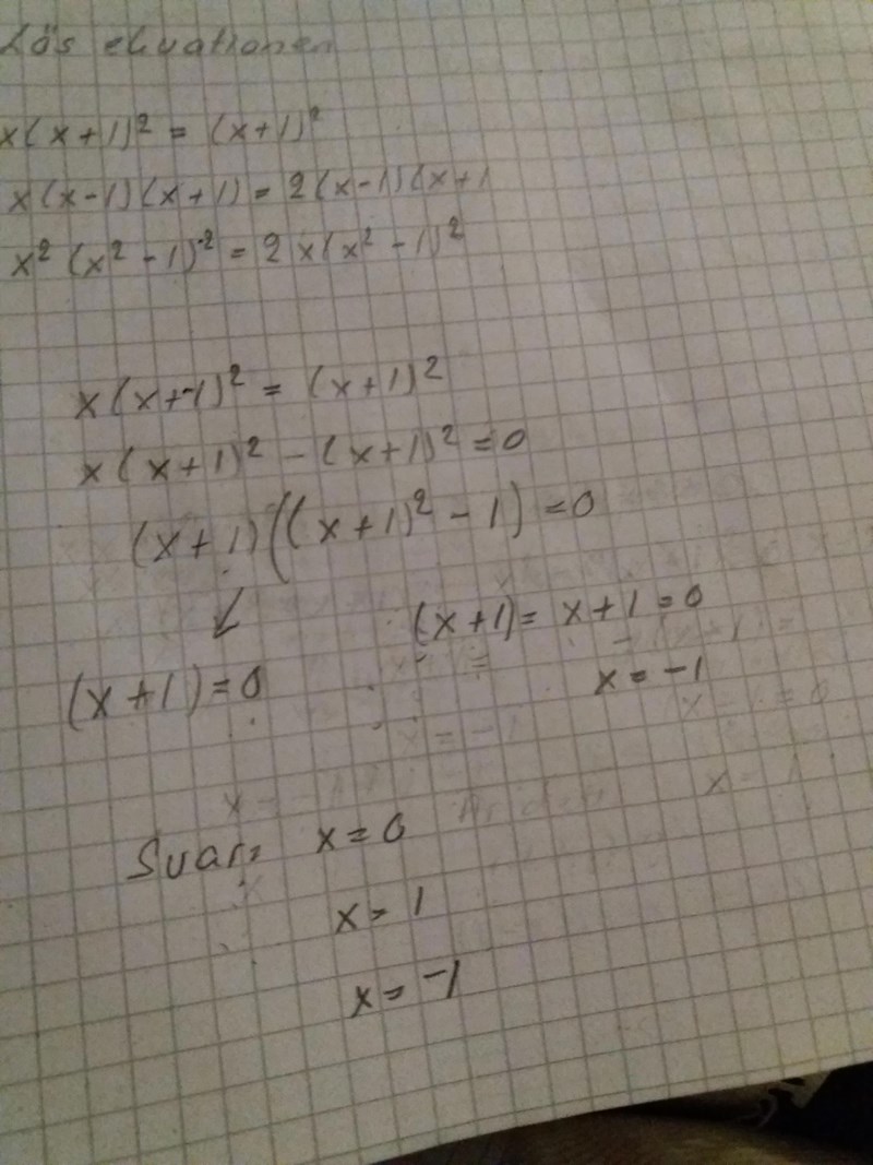 I de andra fallen, dvs där x är skilt från -1 så fortsätter vi att leta efter lösningar.