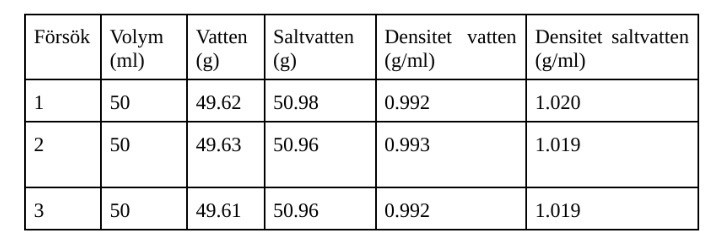 Genom att bestämma densiteten för havsvatten, kunde vi sedan använda detta värde för att beräkna vattnets salthalt. men hur ska jag få fram salthaltet?