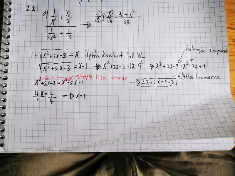 Ska jag börja med att jag får bort roten ur att jag gör kvadrerar på båda sidorna ?. är det en bra start ?.