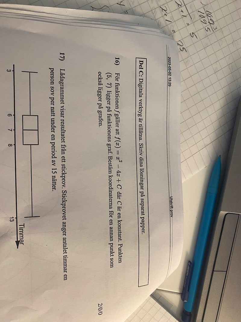Hur får jag reda på C då? Förstår att c är där funktionen skär y-axlen. Kan jag anta att y är 7?
