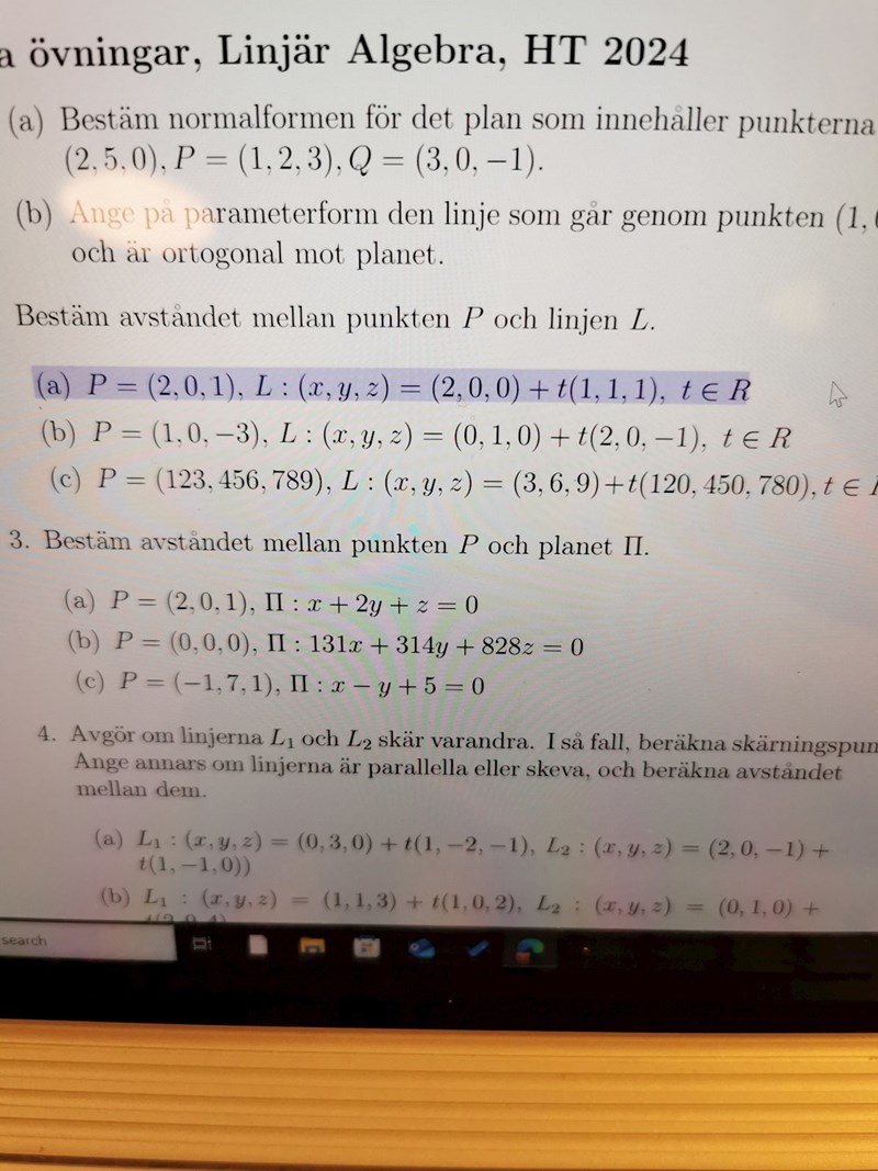 Ska jag börja med att omvandla linjen L till normalform? Jag få det till x-2=y=z