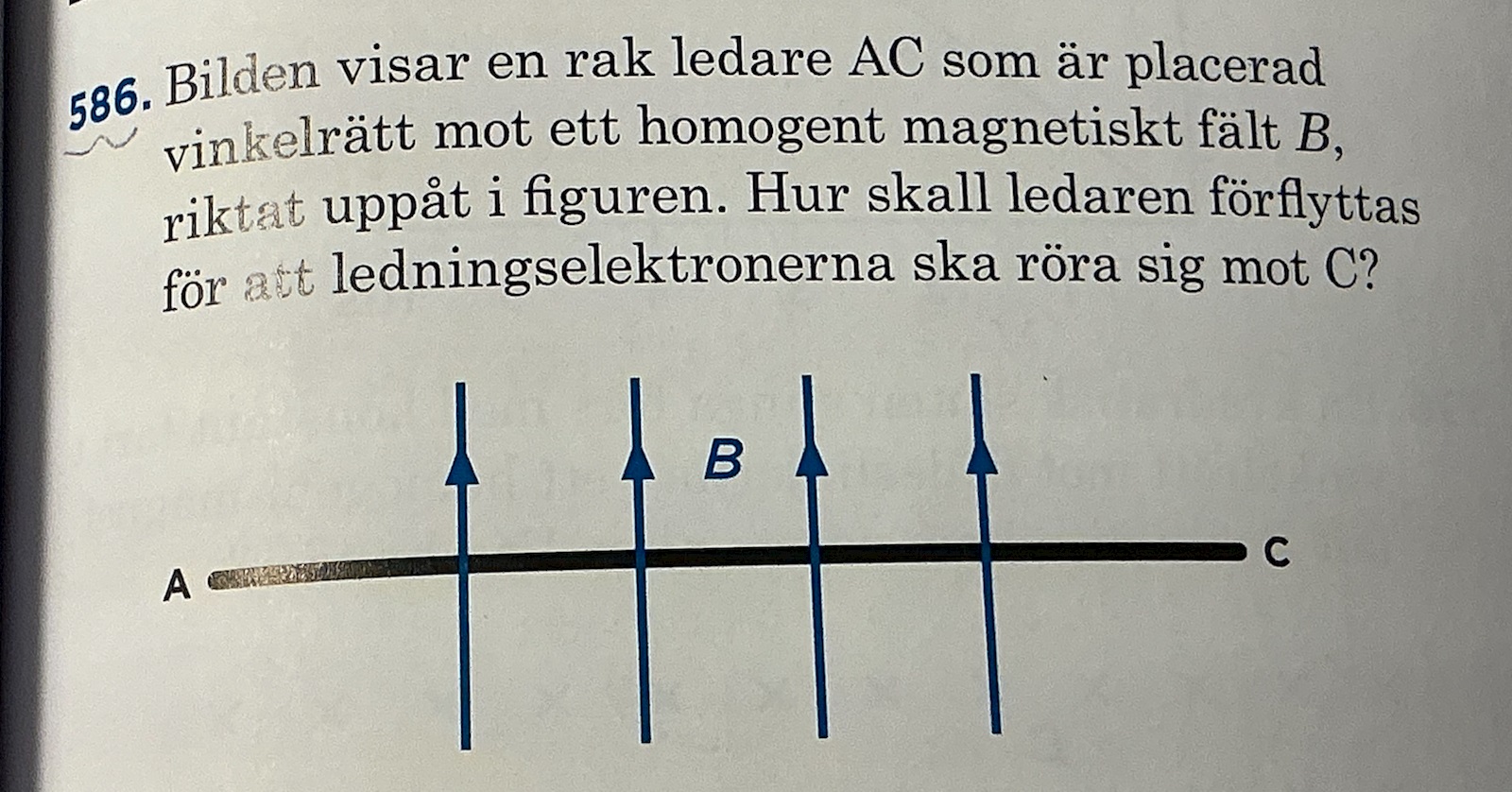 Hur ska ledaren förflyttas för att ledningselektronerna ska rör sig mot C?