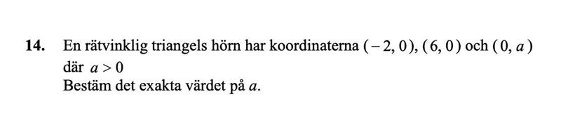 Jag tänkte på pythagoras sats och att produkten av två sidor i kvadrat ska alltså vara lika med hypotenusan i kvadrat, men man måste ju veta hur lång alla sidor är eller vilken sida som är längst och den informationen får man inte, (0,a) kan ligga var som helst på y-axeln.