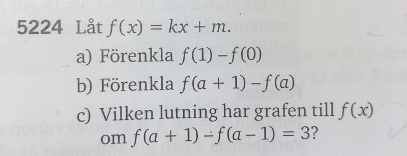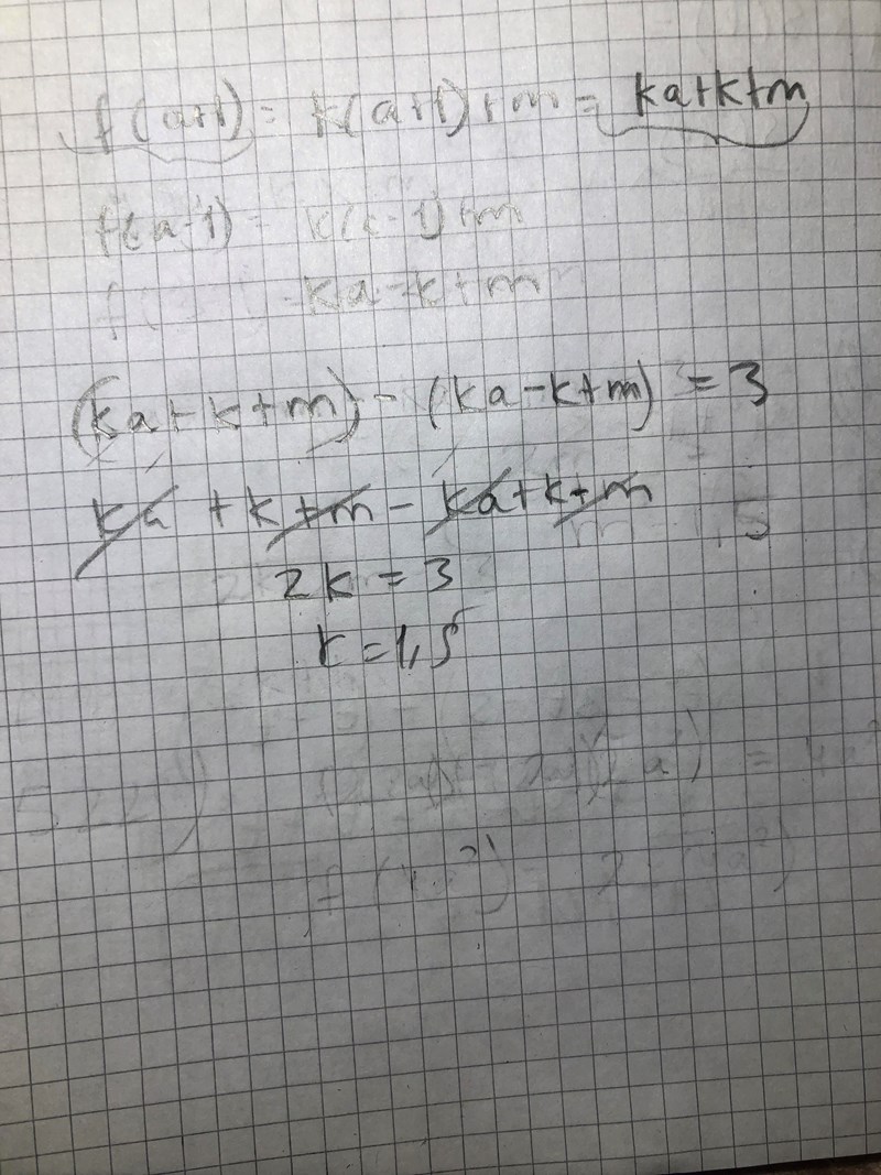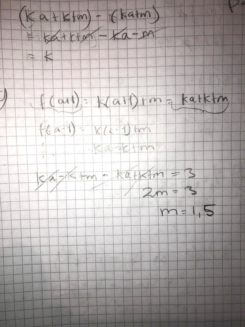 Jag får k(a+1)+m-(k(a-1)+m). Förenkla.