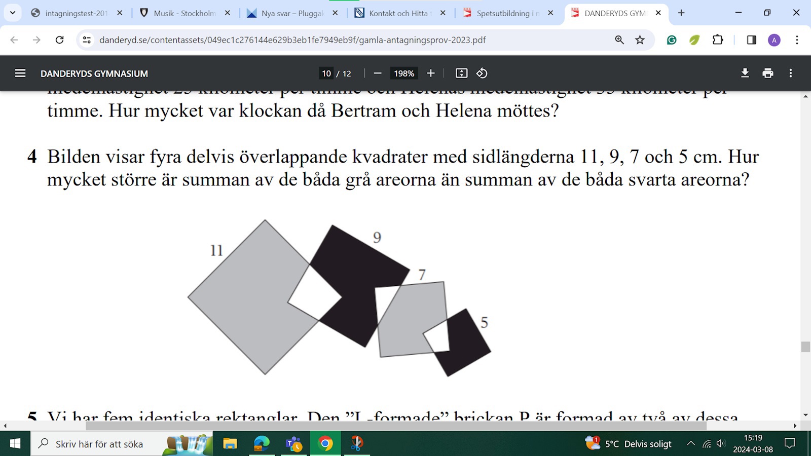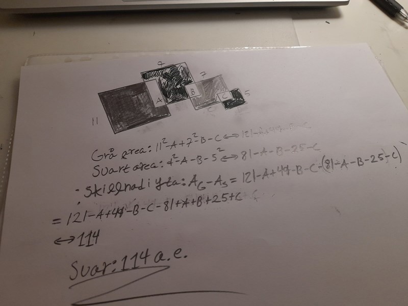 Vad är arean för de grå tillsammans? Vad är arean för de svarta?