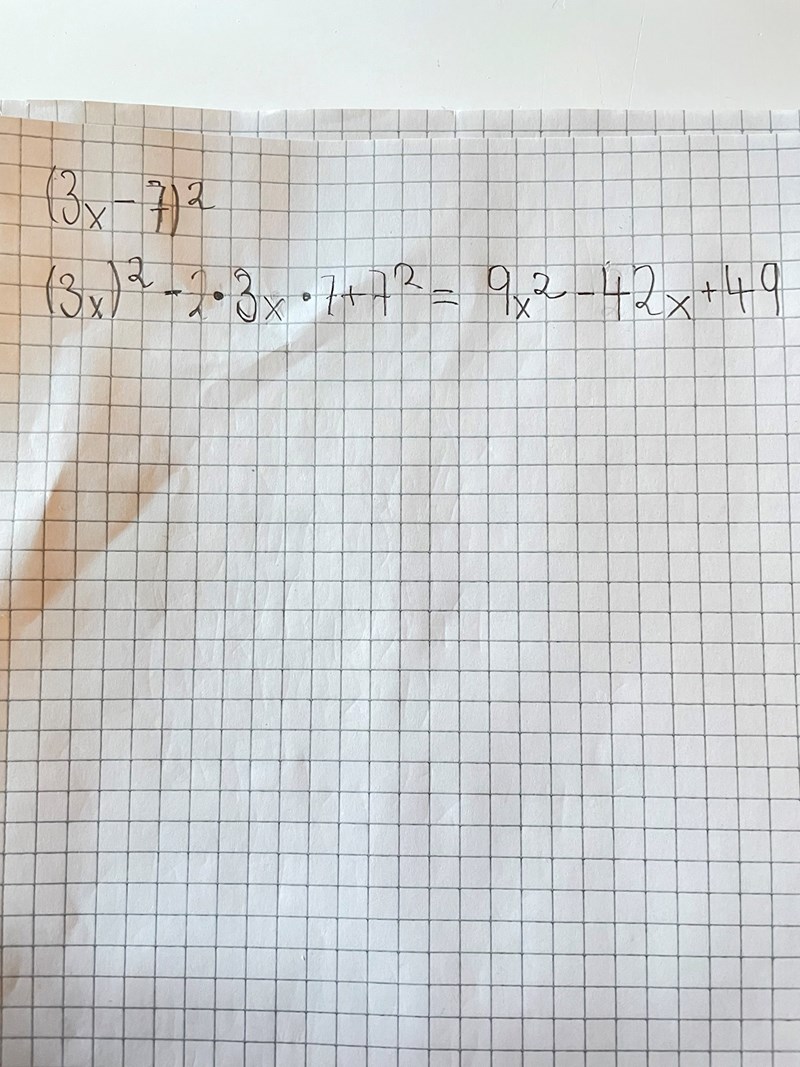 Så det blir alltså. 9x2−42x+49= a+3bx−2cx2