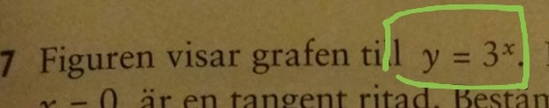 Det gäller tangeringspunkten: Om x-koordinaten är 0 så är y-koordinaten alltså 3^0 = 1.